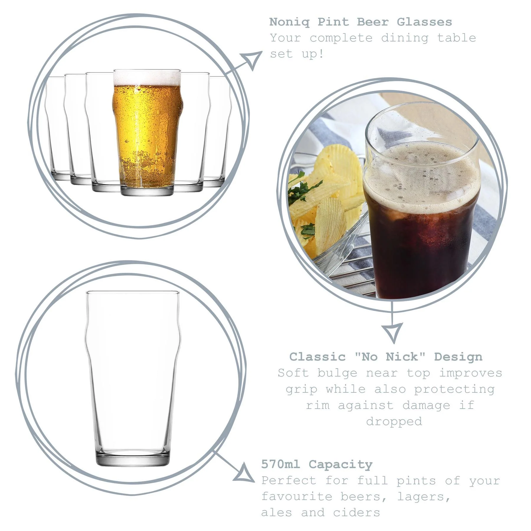 570ml Clear Noniq Pint Beer Glasses - Pack of Six